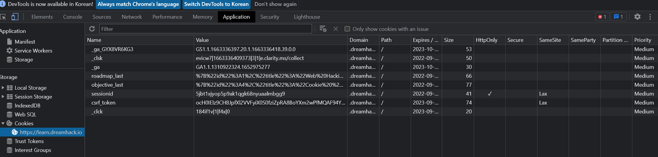 3. Application ํญ์ผ๋ก ๊ฐ ๋ค Cookies ํผ์น๊ธฐ