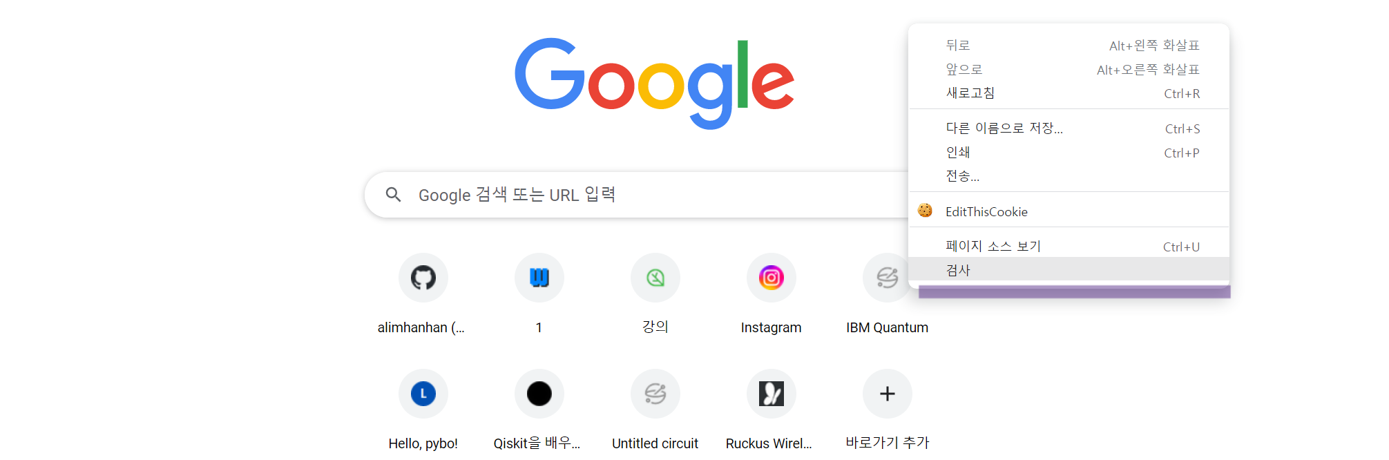 1. ํฌ๋กฌ ํ์ด์ง ์คํ ํ ๋ง์ฐ์ค ์ฐํด๋ฆญ --> '๊ฒ์ฌ' ๋ฒํผ ํด๋ฆญ