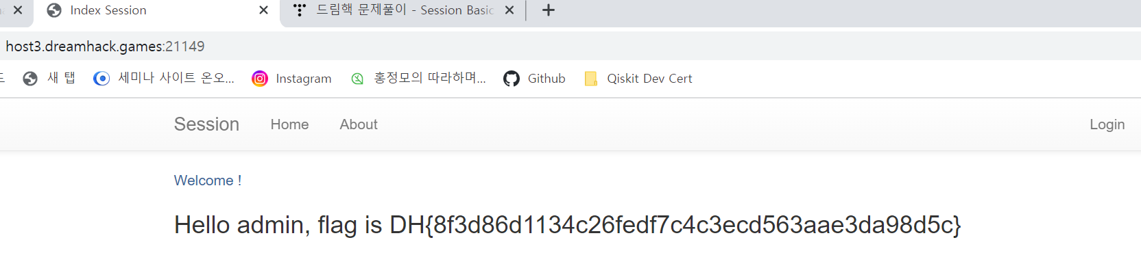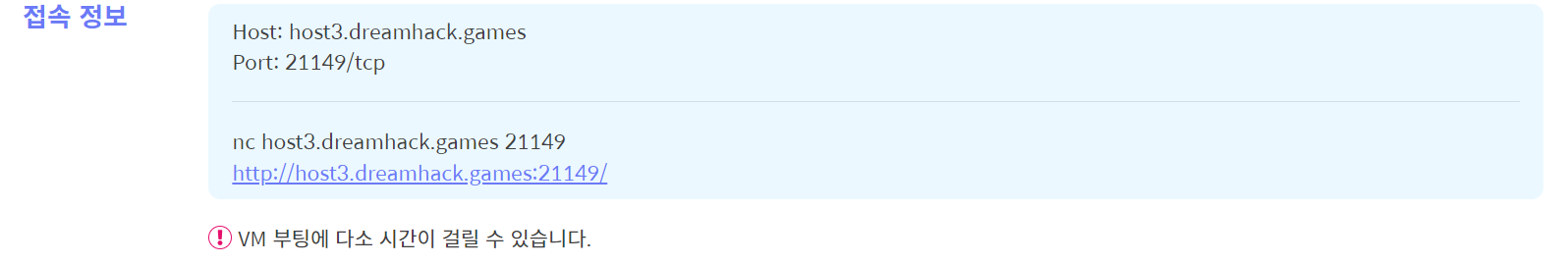 7. ๊ฐ์ฅ ์ด๋ฐ์ ํ์ด์ง์ธ host3.dreamhack.gmaes:21149๋ก ๋์์ค๋ฉด FLAG๊ฐ ์ถ๋ ฅ๋จ