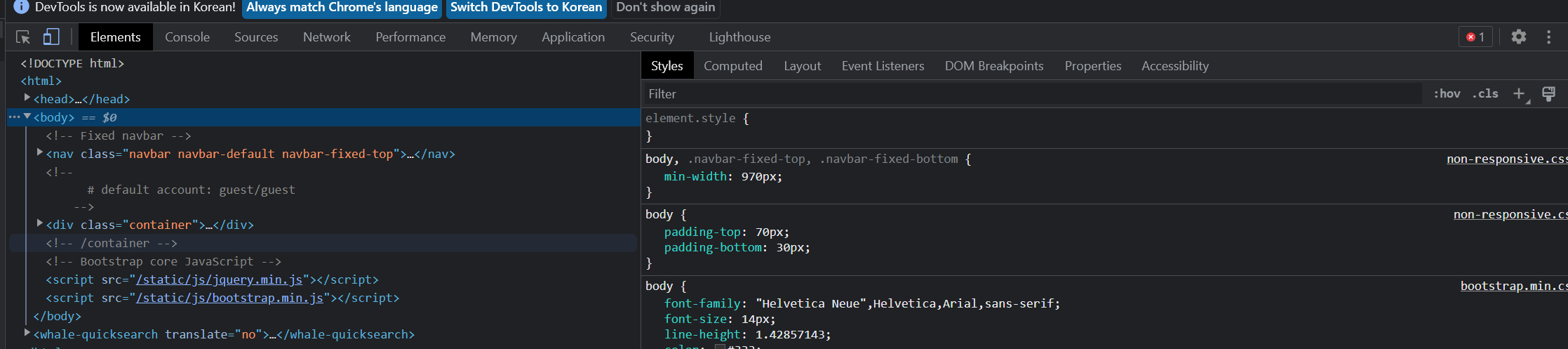 5. guest๋ก ๋ก๊ทธ์ธ ํ ๊ฒ์์ฐฝ์ /admin ์ ๋ ฅ --> guest, admin์ ์ธ์ ์์ด๋ ๋ ธ์ถ
