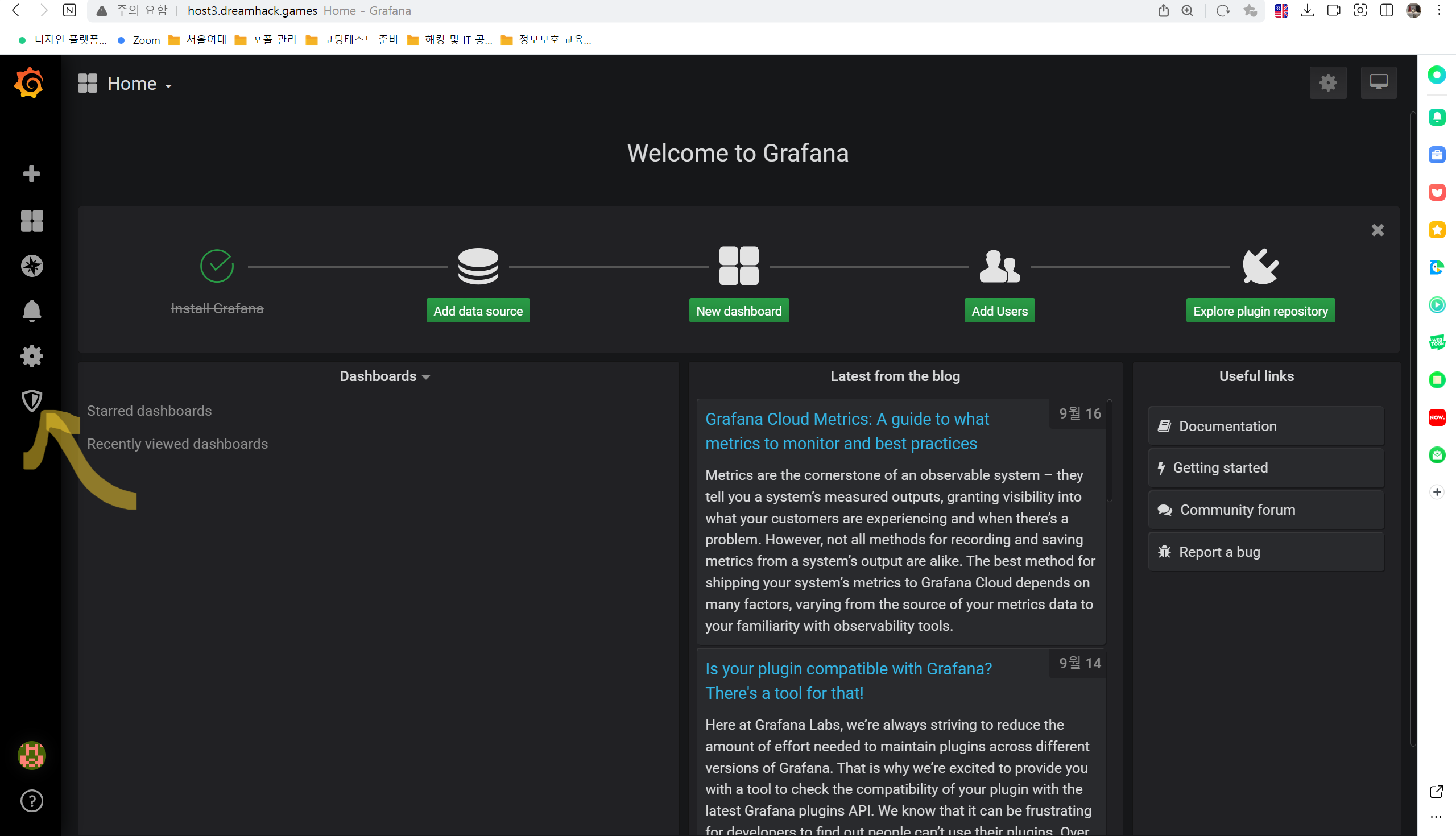 3. ์ ์ ํ ์์ด๋๋๊ณผ password ๋์ ๊ฐ๊ฐ admin์ ์ ๋ ฅํ์ฌ ๋ก๊ทธ์ธ