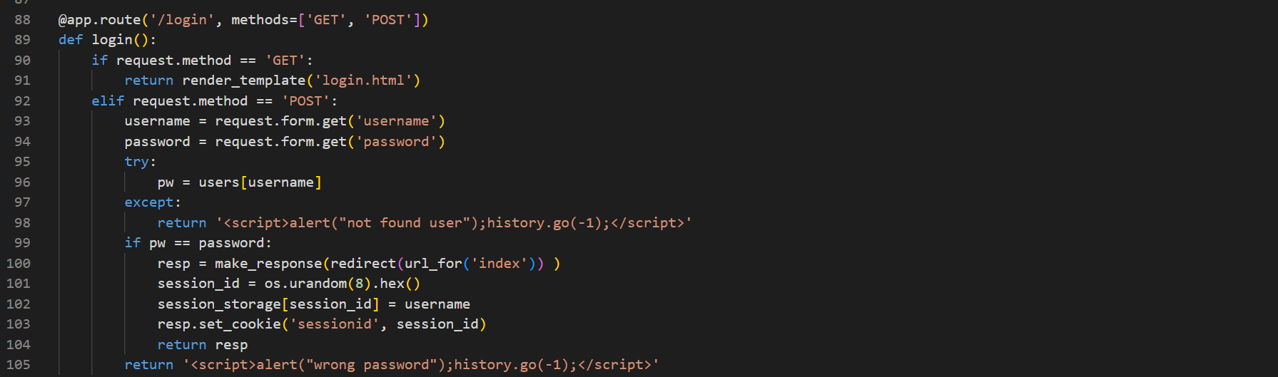 : GET ๋ฐฉ์์ผ๋ก ์ ๊ทผ ์ --> ์ธ์ ์์ด๋, password ํ๋ผ๋ฏธํฐ์ ๊ฐ์ ๊ฐ์ ธ์จ ๋ค password ๋ณ์์ ์ ์ฅ