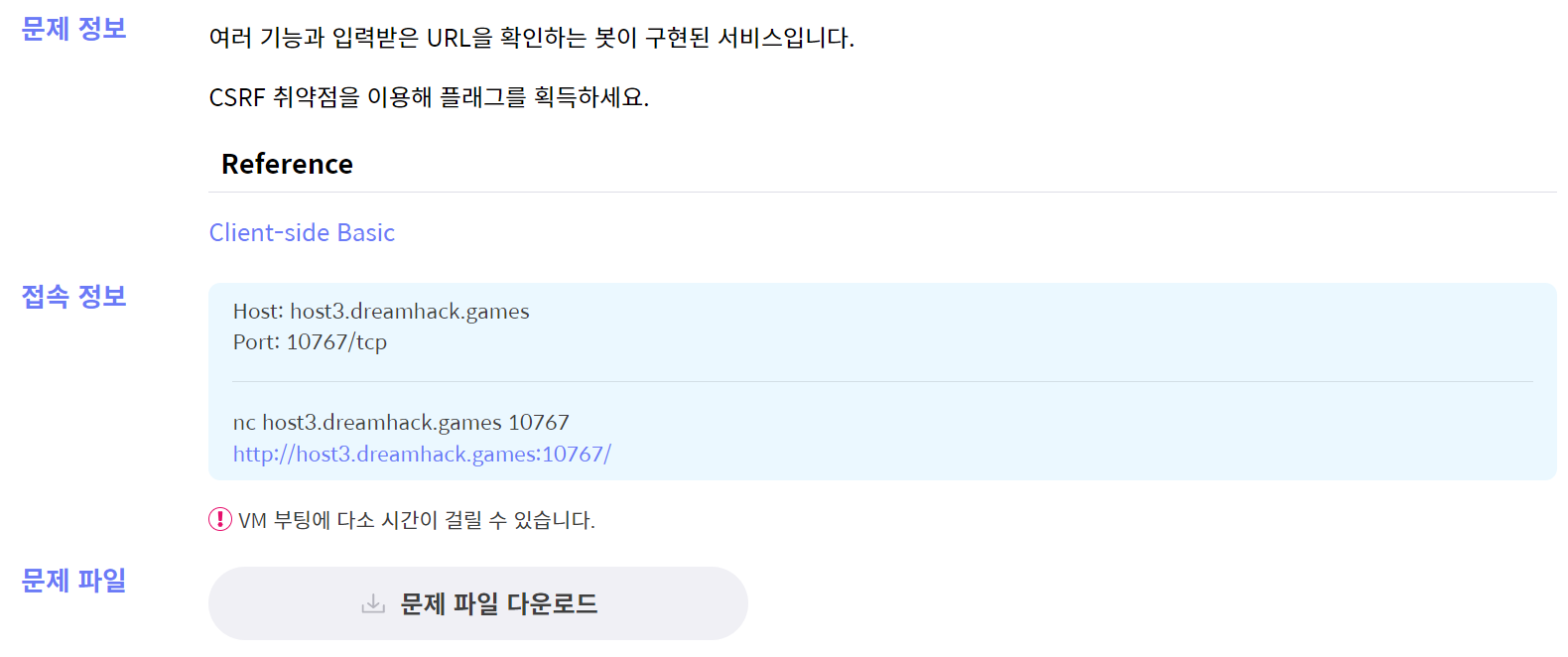 | [Dreamhack] ClientSide: CSRF ( Cross Request Forgery ) (0) | 2022.09.22 |