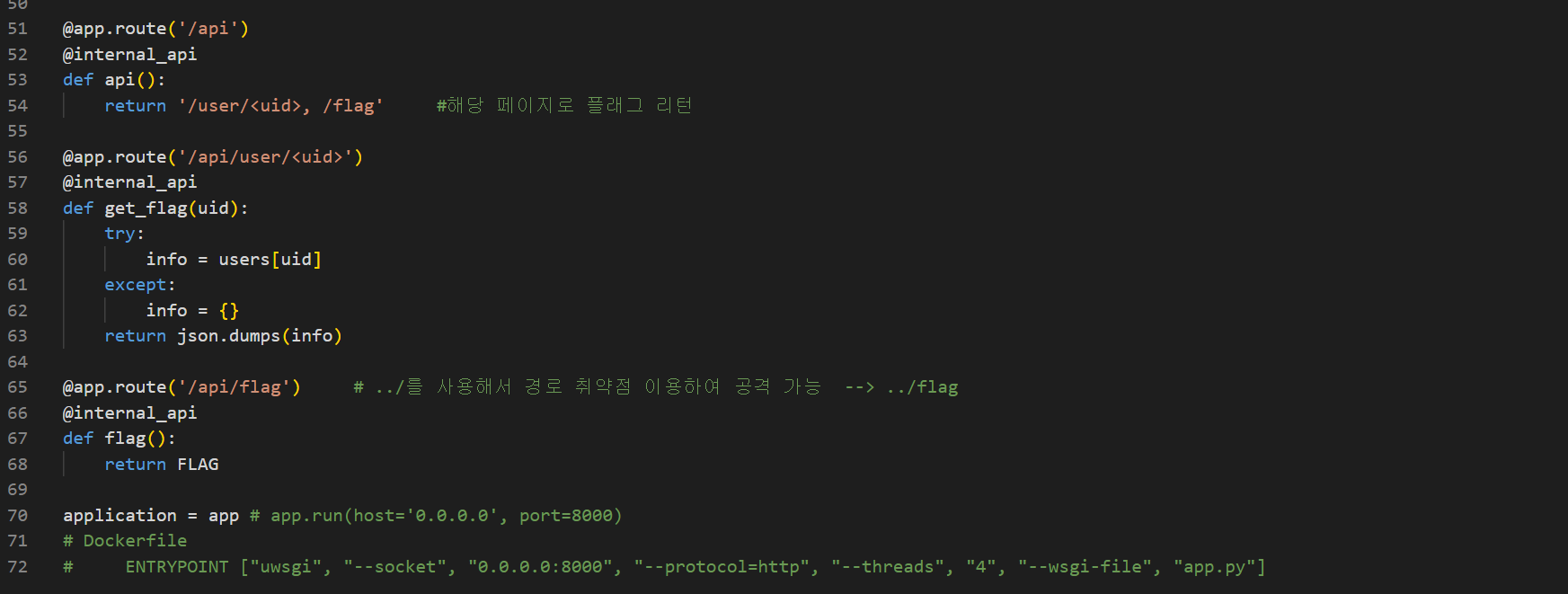 : ../flag --> ์์ ๋๋ ํ ๋ฆฌ, flag ํ์ด์ง๋ก ์ฐจ๋ก๋ก ์ด๋ํ๊ฒ๋ ํ๋ ๊ฒฝ๋ก ์กฐ์ ์ฝ๋