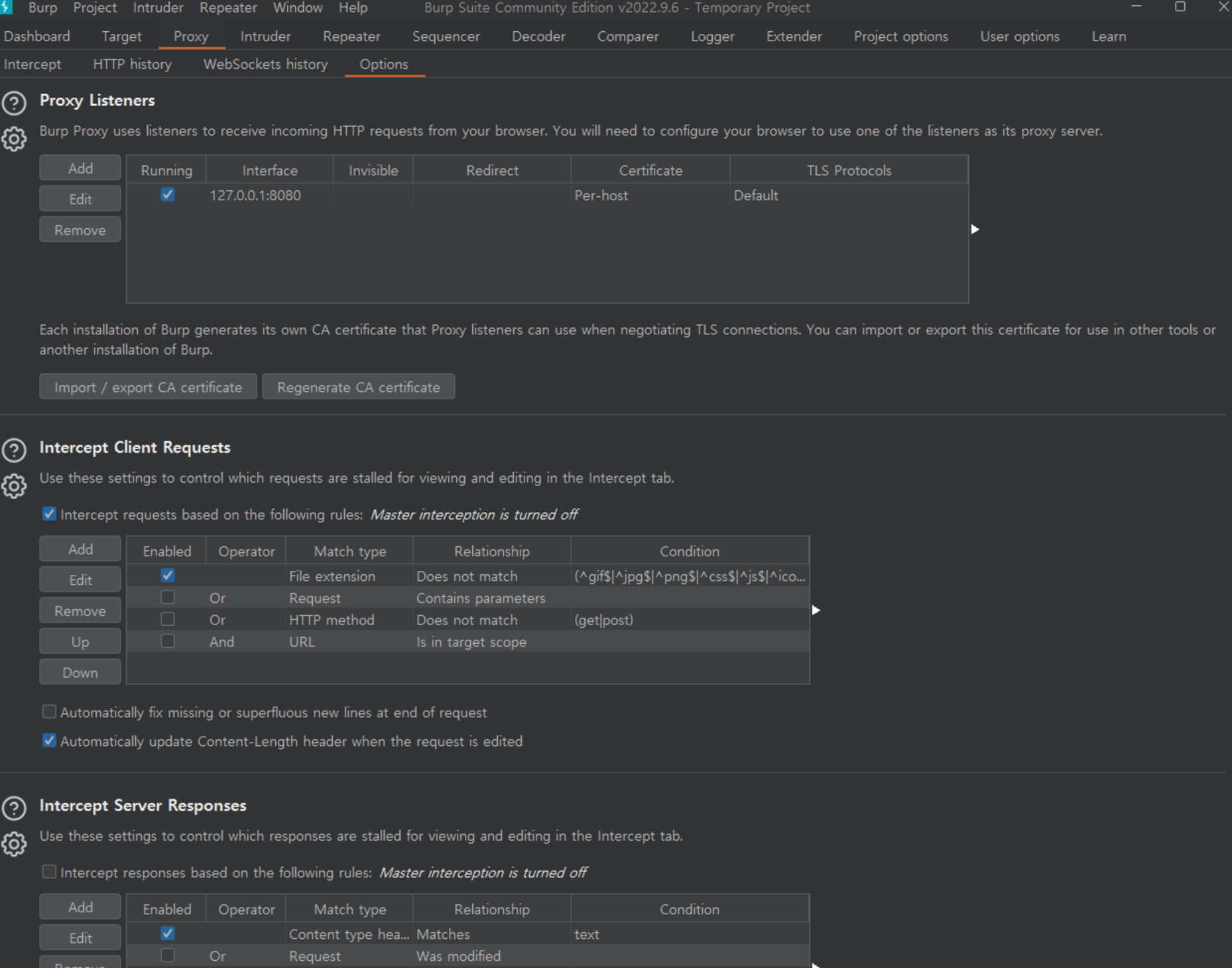 2. Proxy ํญ ํด๋ฆญ ํ Options๋์ผ๋ก ์ด๋