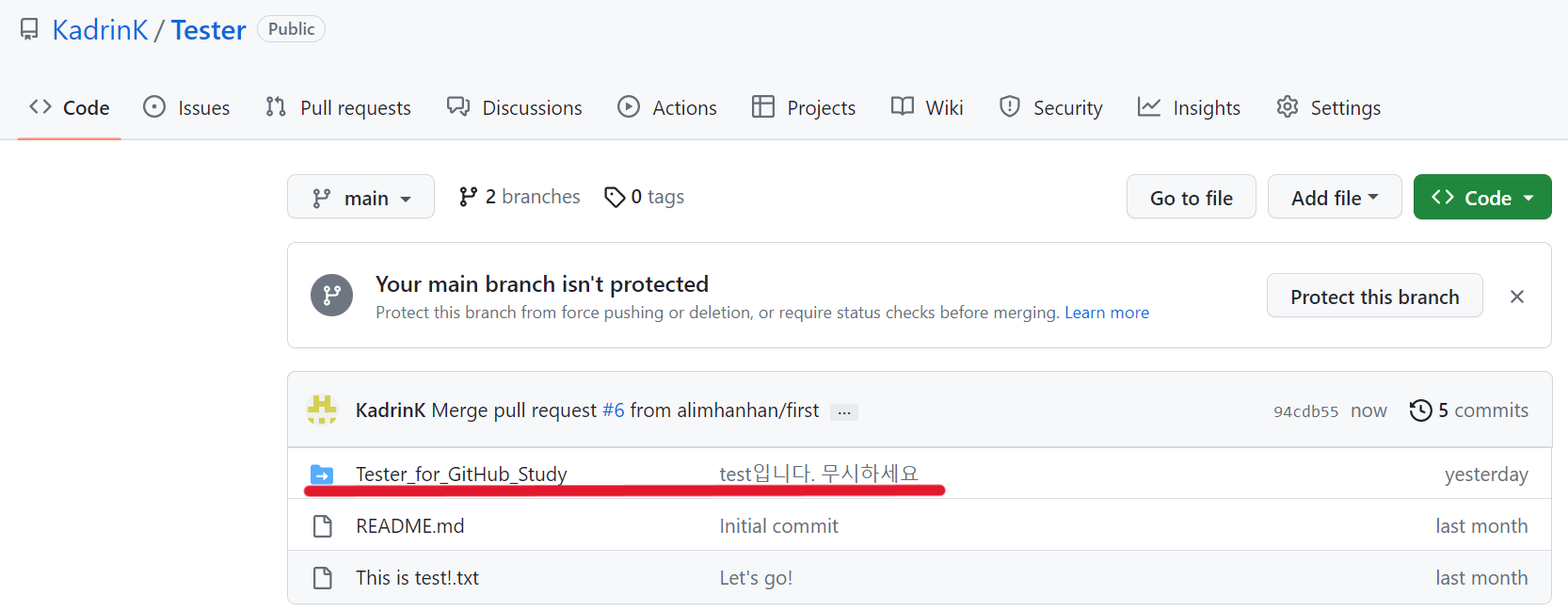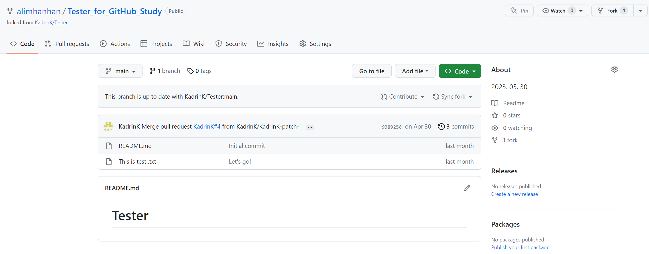 --> ์ ๊ณผ์ ๊น์ง ์งํํ๋ฉด, ๊นํ๋ธ์ ๋ณ๊ฒฝ ์ฌํญ์ด ๋ฐ์๋์์์ ํ์ธํ ์ ์๋ค.