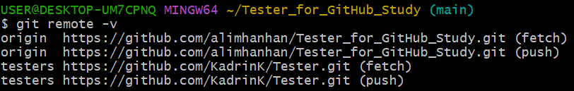 $ git remote -v #2 ์์ฑ๋ ์๊ฒฉ ์ ์ฅ์ ํ์ธ