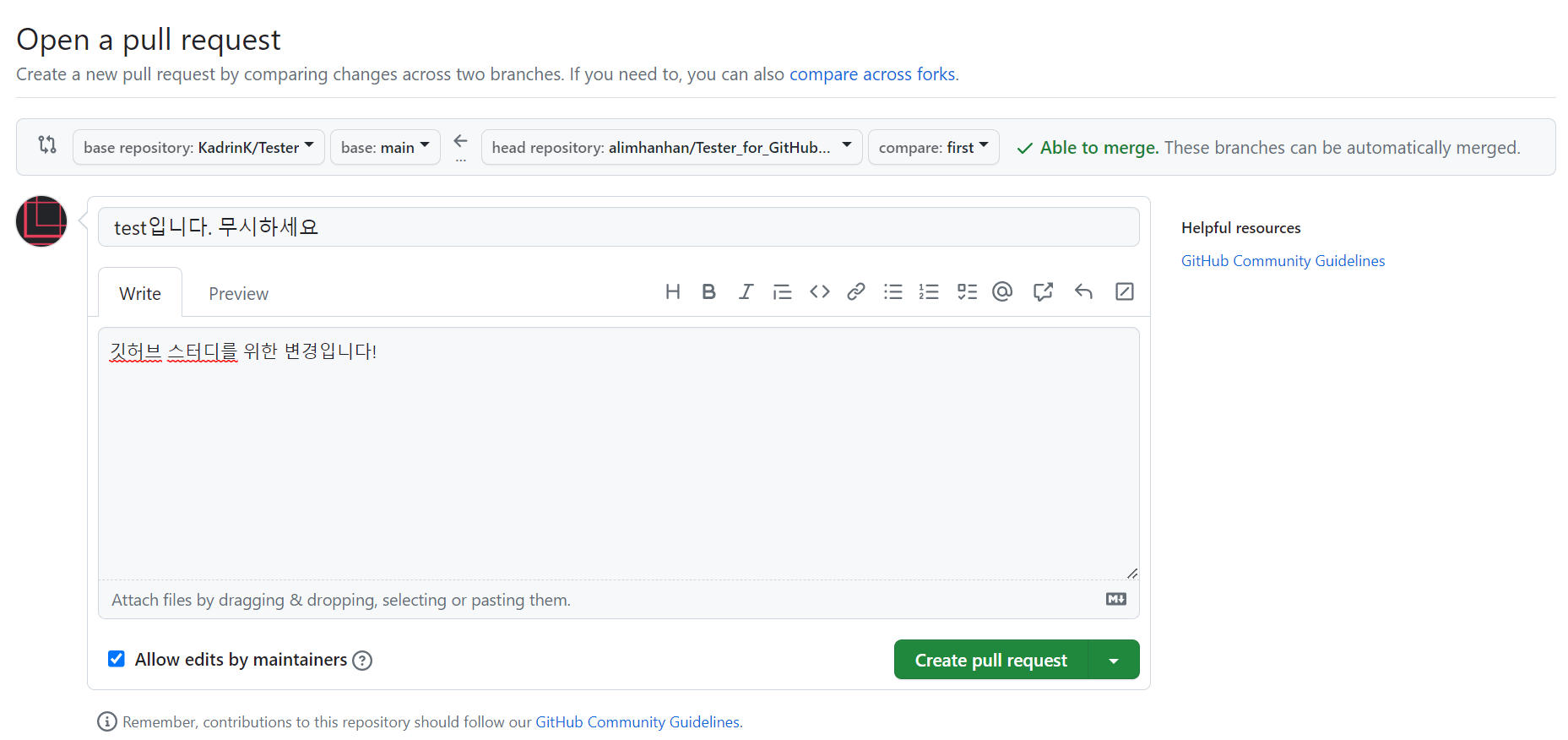 ๐ GitHub Pull Request(PR) ๊ธฐ๋ฅ์ ์ฌ์ฉ๋ฒ