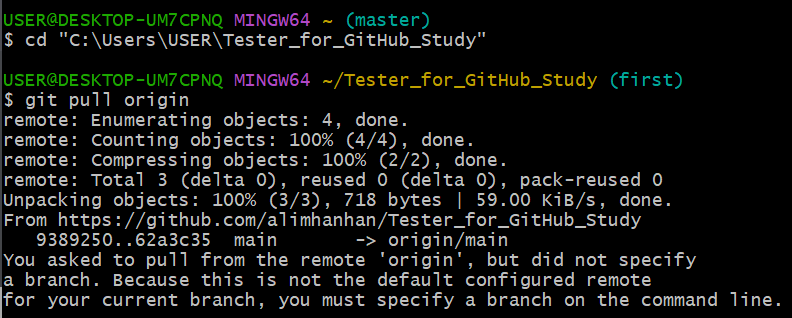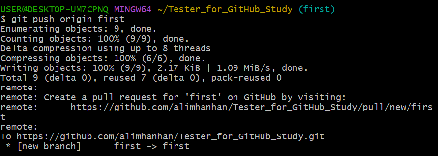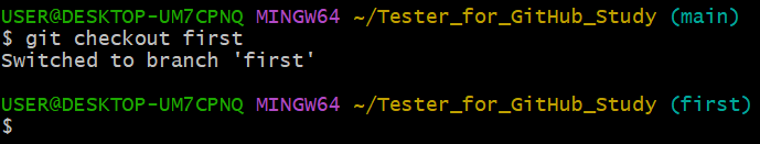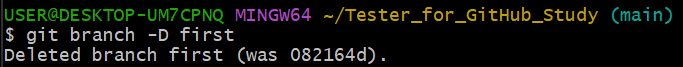 $ git branch -D first #3 ์ฌ์ฉ์ด ๋๋ branch ์ญ์