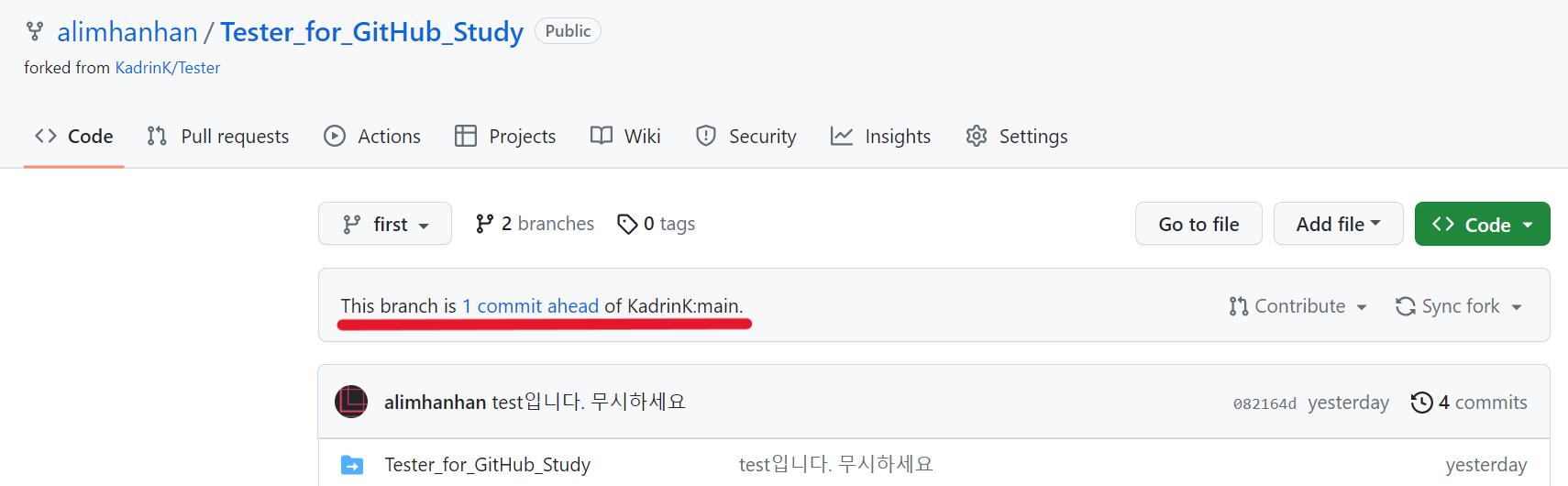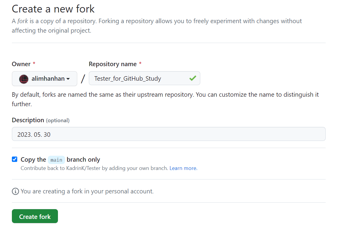1. ์์ ํ ๋ ํฌ์งํ ๋ฆฌ์ ๋ํด fork(ํฌํฌ) ์งํ