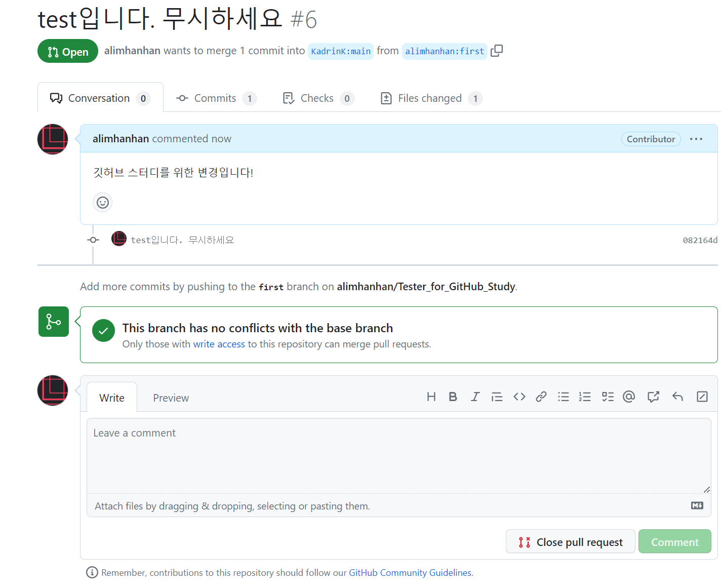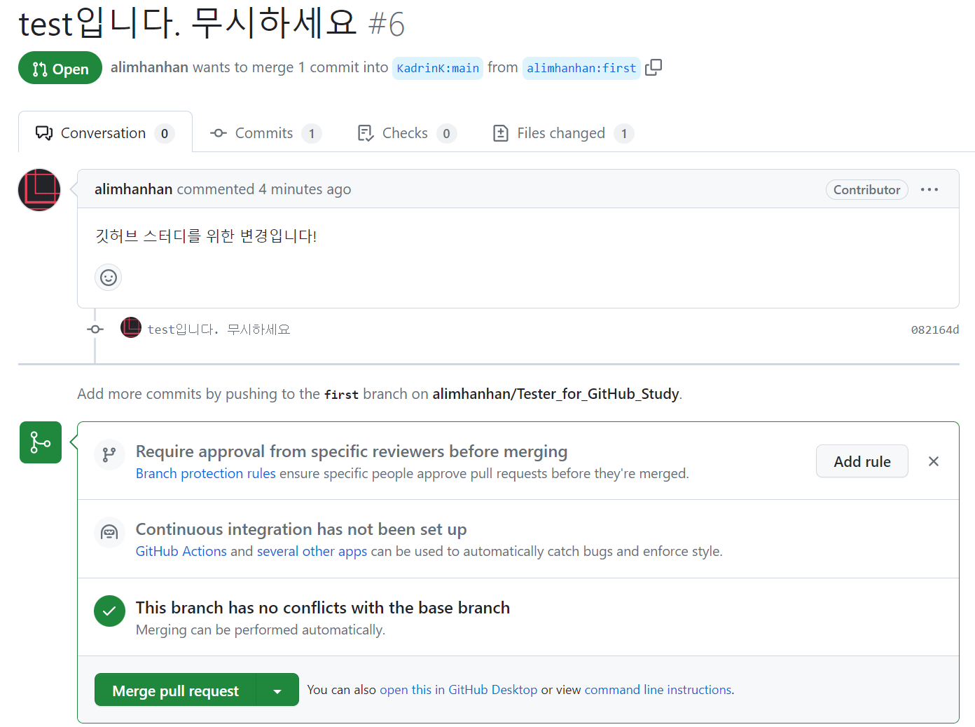 7. Pull Request & Merge ์งํ ํ ๋๊ธฐํ