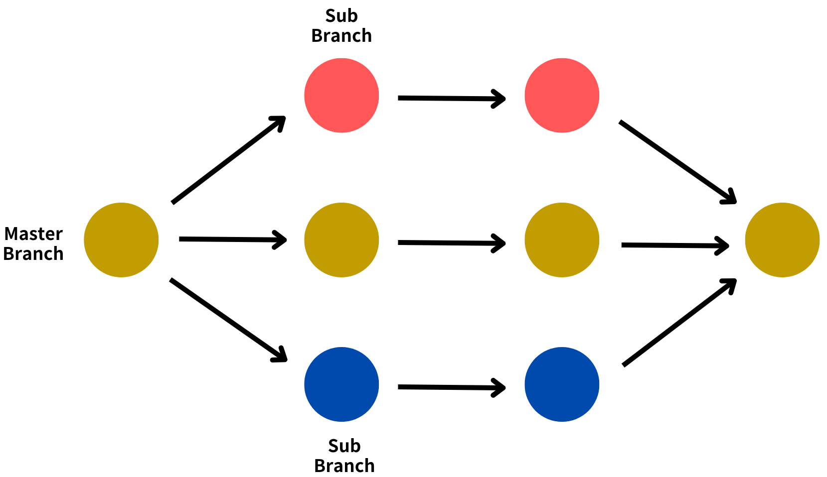๊ธฐ๋ณธ์ ์ผ๋ก master (๋๋ main) ๋ธ๋์น๊ฐ ์์ฑ๋์ด ์๊ณ , branch ์์ฑ ๋ช ๋ น์ด๋ฅผ ํตํด ์ด master ๋ธ๋์น์์ ๋ถ๊ธฐํ์ฌ ๋ณ๋์ ์์ ๊ณต๊ฐ์ ๋ง๋ค ์ ์๋ค.