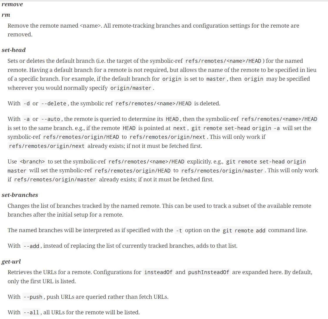 Remote ๋ช ๋ น์ด๋ฅผ ์ฌ์ฉํ์ฌ ์๊ฒฉ ์ ์ฅ์๋ฅผ ์ ๊ฑฐ, ์ถ๊ฐํ๊ฑฐ๋ ์์ ํ๋ ๋ฑ์ ์์ ์ด ๊ฐ๋ฅํ๊ณ , ์๊ฒฉ ์ ์ฅ์์์ ์ฐ๊ฒฐ์ ๊ด๋ฆฌํ ์ ์๋ค.