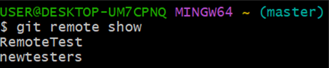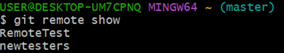 $ git remote show # ํ์กดํ๋ ์ ์ฅ์๋ช