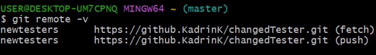 $ git remote rename "์ ์ฅ์์ ์ด์ ์ด๋ฆ" "์ ์ฅ์์ ์ ์ด๋ฆ"