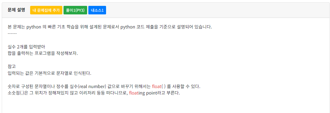๐คฝ 6026 : ์ค์ 2๊ฐ ์ ๋ ฅ๋ฐ์ ํฉ ๊ณ์ฐํ๊ธฐ