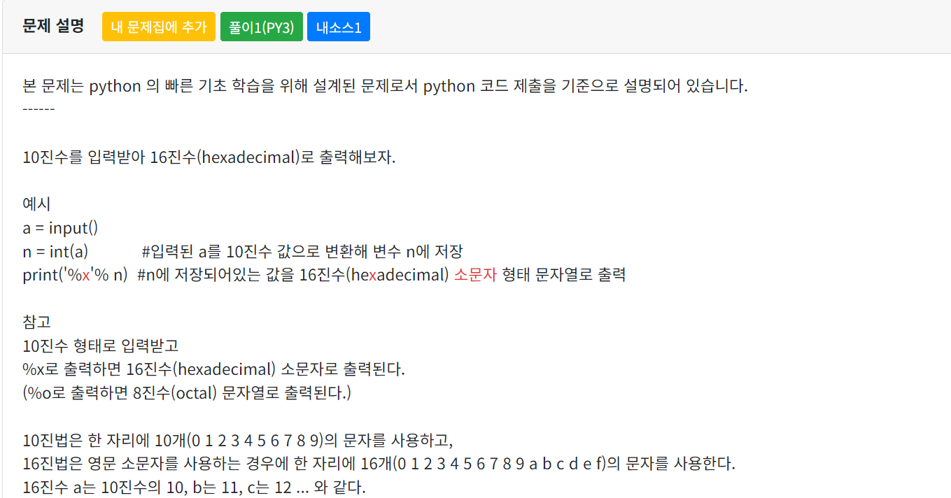 ๐ท 6027 : 10์ง ์ ์ ์ ๋ ฅ๋ฐ์ 16์ง์๋ก ์ถ๋ ฅํ๊ธฐ 1