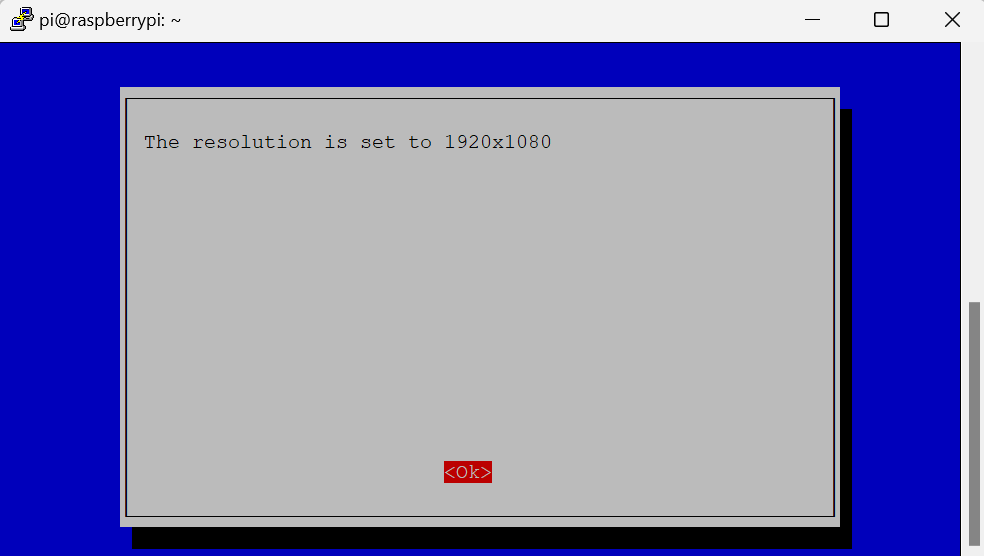 14. VNC Resolution ์ ํ ํ "Enter" ํด๋ฆญ --> ํ๋ฉด ํด์๋ ์ ํ ํ <OK>