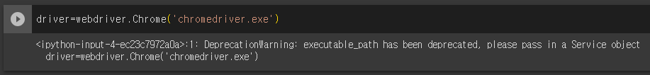 3. Papago ๋ฅผ ํตํ KOR -> EN ๋ฒ์ญ_B) WebDriver๋ฅผ ์ฌ์ฉํ์ฌ Chrome ๋ธ๋ผ์ฐ์ ์ ์ด ์ฝ๋ ์์ฑ