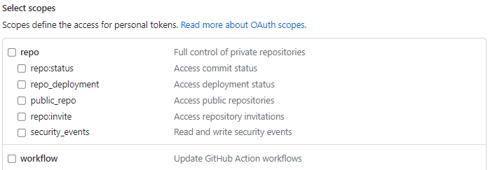 5. μμ±ν ν ν°μ λν΄ λΆμ¬ν κΆν μ ν ν "Generate token" ν΄λ¦