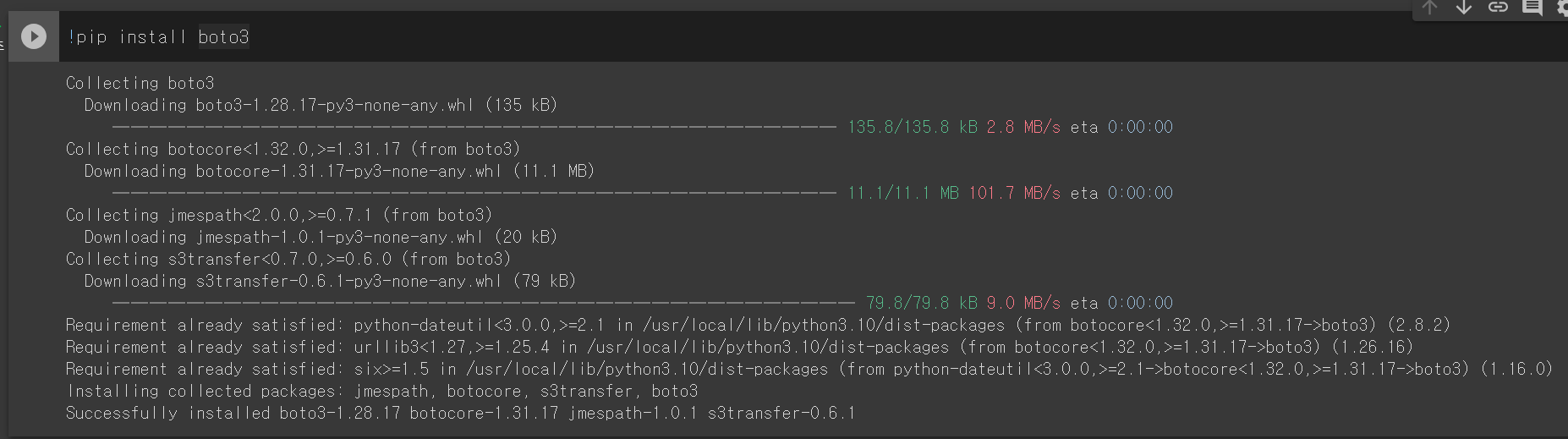 1. pip λͺ λ Ήμ΄λ₯Ό μ΄μ©νμ¬ boto3 μ€μΉ