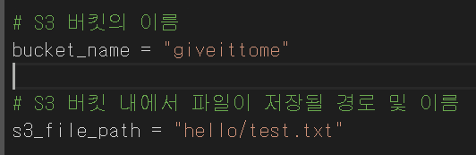 3. boto3λ₯Ό μν¬νΈν ν, νμΌμ S3 λ²ν·μ μ λ‘λνλ upload_file_to_s3() ν¨μ ꡬν