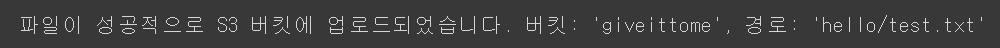 print(f"νμΌμ΄ μ±κ³΅μ μΌλ‘ S3 λ²ν·μ μ