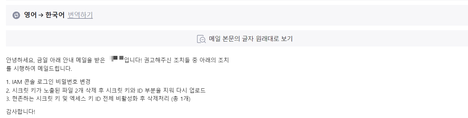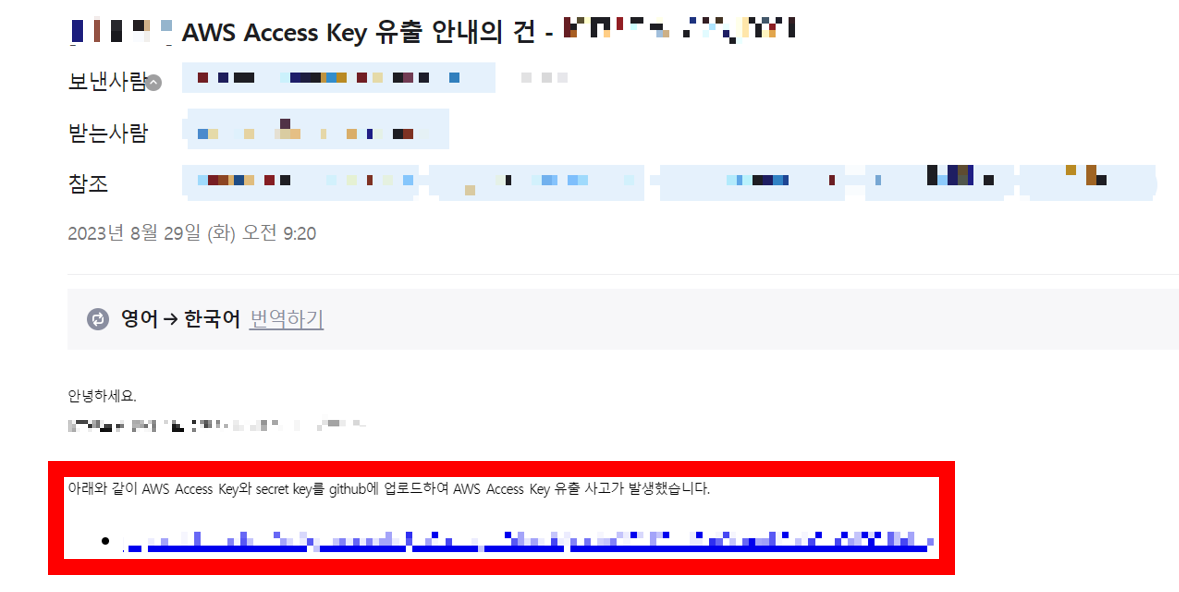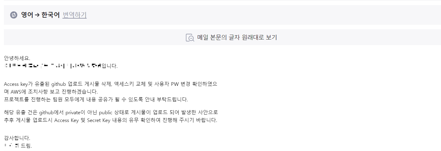1. AWS์ ์ํฌ๋ฆฟ ํค๊ฐ ์ ์ถ๋ ๊ฒฝ์ฐ, ์๋์ ๊ฐ์ ๋ฉ์ผ์ด ์ ์ก๋๋ค.