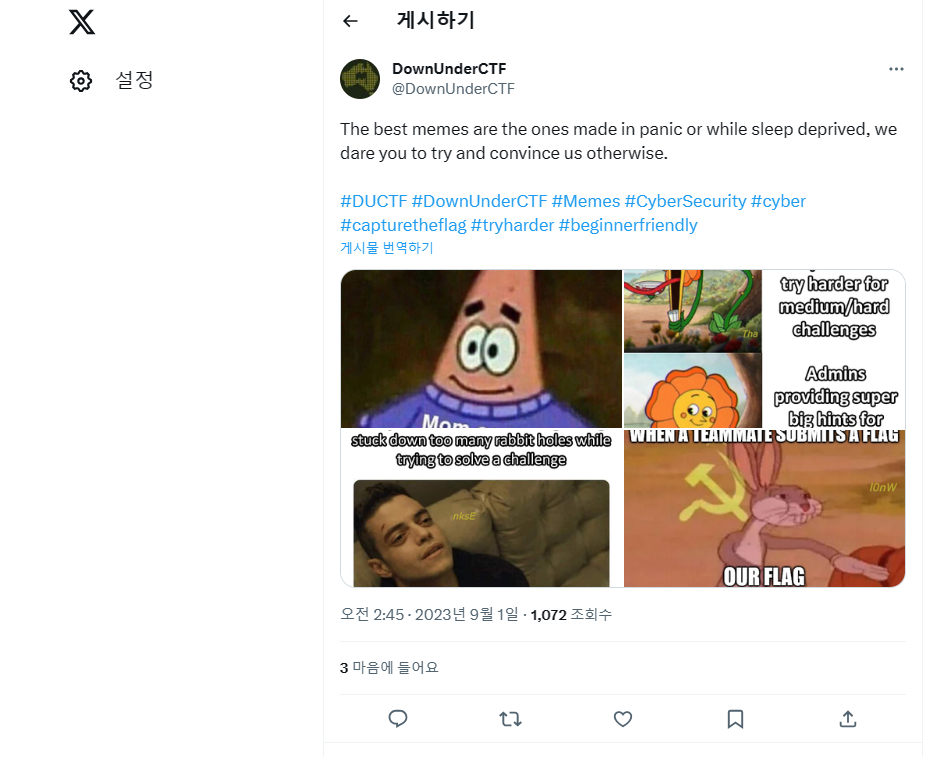 https://twitter.com/DownUnderCTF/status/1697304493409337835