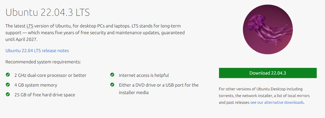 3. ์๋๋ก ์คํฌ๋กคํ ํ Download 22.04.3 ๋ก ํ์๋ ๋ฒํผ ํด๋ฆญ