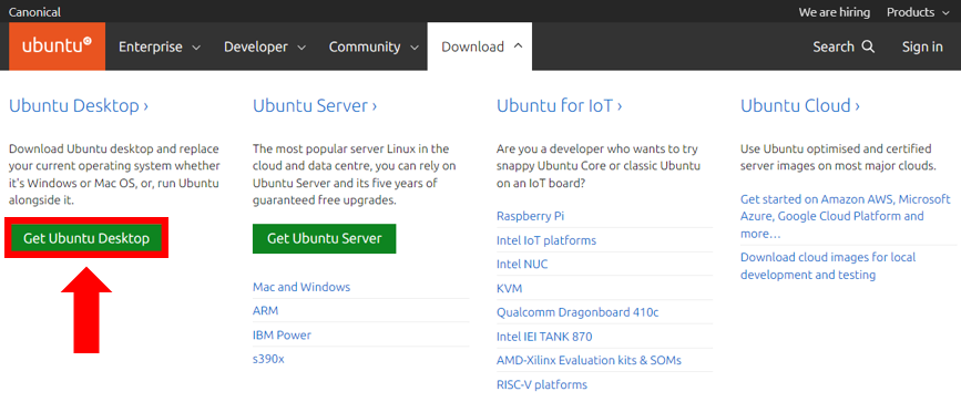 2. Ubuntu Desktop ํญ์์ Get Ubuntu Desktop ํด๋ฆญ