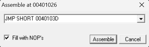 5. JE๋ก ์์ฑ๋ ๊ตฌ๊ฐ์ ๋๋ธํด๋ฆญํ์ฌ JMP๋ก ์์ ํ Assemble ํด๋ฆญ