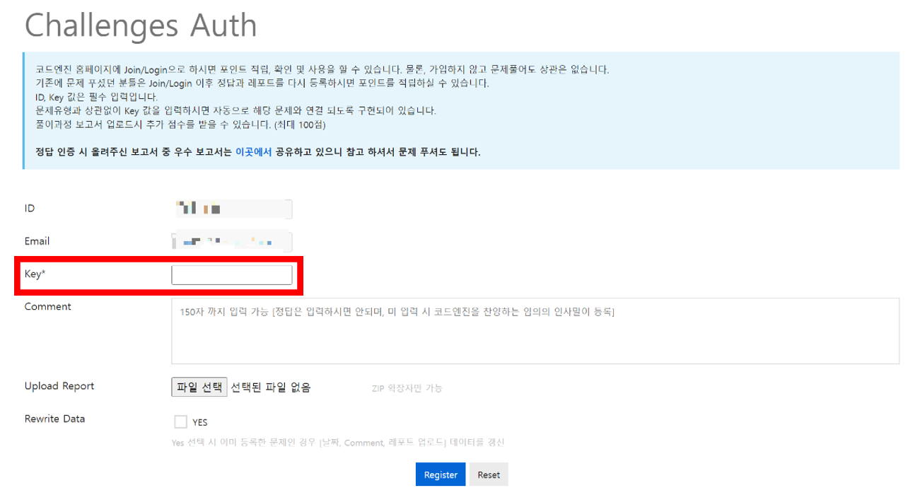 7. ์ ๋ ฅ๋์ Key ๋ถ๋ถ์ ์์์ ์ป์ ๋น๋ฐ๋ฒํธ๋ฅผ ์ ๋ ฅํ ํ, Register ํด๋ฆญ