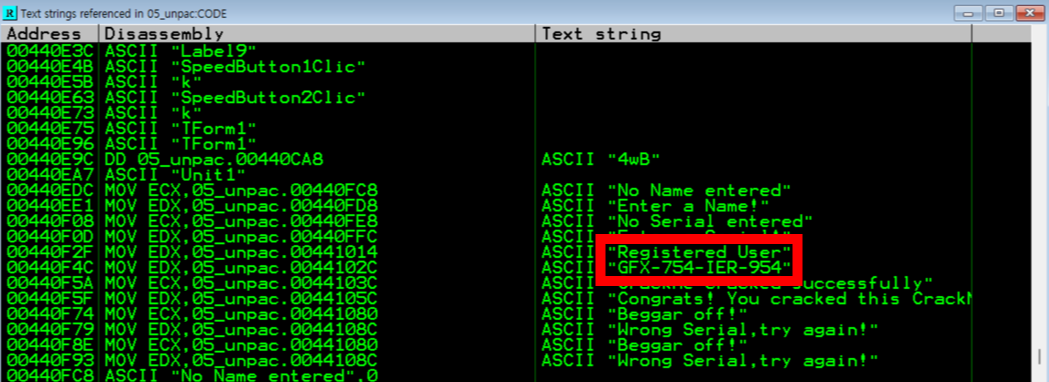 9. ๋ฌธ์์ด ์ค ์ ๋ต์ผ๋ก ๋ณด์ด๋ "Registered User"์ "GFX-754-IER-954" ์ ๋ฐ๊ฒฌ