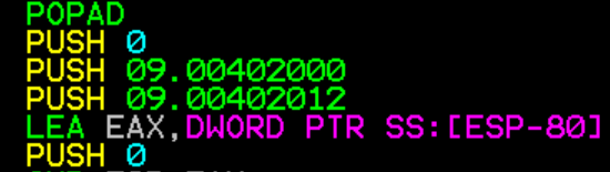 8. ๋ค์ ์ธํจํน๋ ํ์ผ(09_unpacked.exe)์ Immunity Debugger์์ ์คํํ ํ, ์์์ ๋ฐ๊ฒฌํ ์ฝ๋๋ฅผ ์ ๋ ฅ