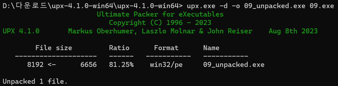 [UPX Un/Packer] UPX ํจํน๋ ํ์ผ ์ธํจํนํ๊ธฐ