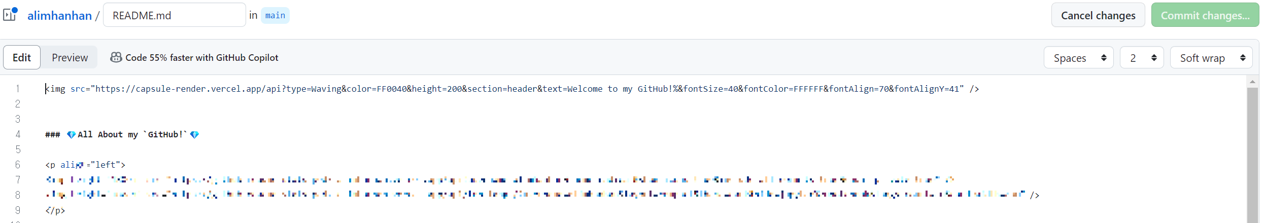 1. ๋ณธ์ธ ๊ณ์ ์ README.md ํ์ผ ์ด๊ธฐ --> ํธ์ง ๋ฒํผ ํด๋ฆญ