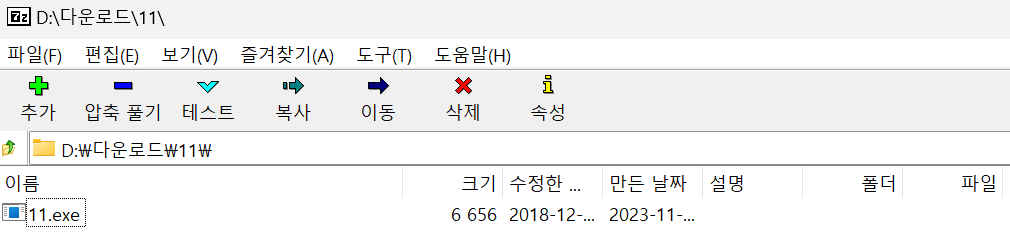 2. 7-Zip File Manager ์ ํตํด ํ์ผ ์์ถ ํด์ --> 11 ํ์ผ ์ ์์ฉ ํ๋ก๊ทธ๋จ ๋ฐ๊ฒฌ