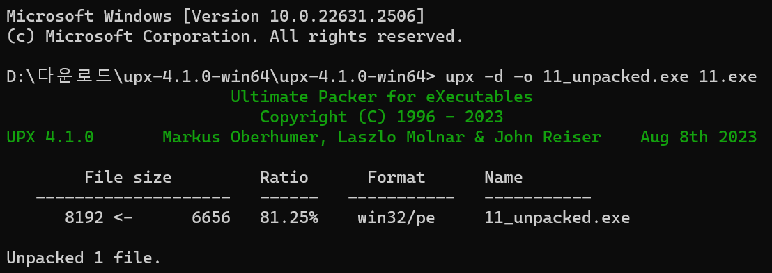 [UPX Un/Packer] UPX ํจํน๋ ํ์ผ ์ธํจํนํ๊ธฐ