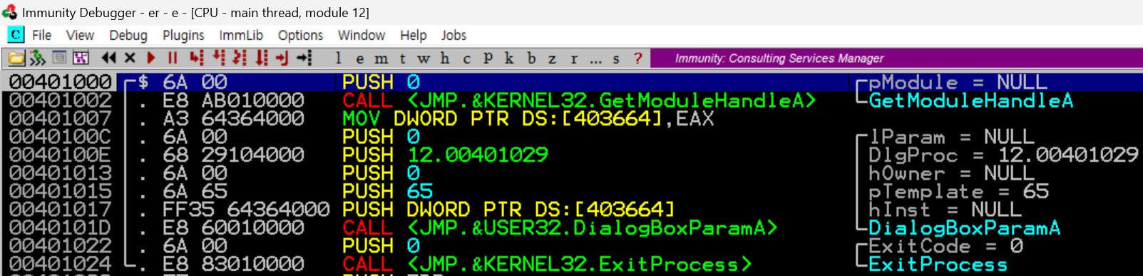 4. 12.exe ํ์ผ์ Immunity Debugger ์์ ์คํ
