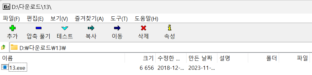 2. 7-Zip File Manager ์ ํตํด ํ์ผ ์์ถ ํด์ --> 13 ํ์ผ ์ ์์ฉ ํ๋ก๊ทธ๋จ ๋ฐ๊ฒฌ