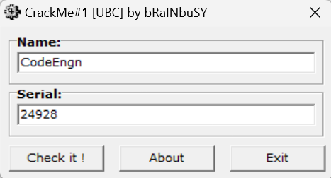 : "CodeEngn" ์ ๋ํ Serial ๊ฐ == 0x6160 ์ 10์ง์ ํ๊ธฐ