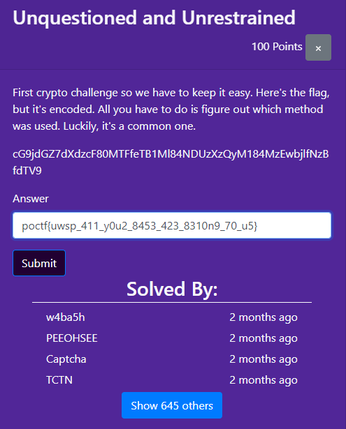 ciphertext = "cG9jdGZ7dXdzcF80MTFfeTB1Ml84NDUzXzQyM184MzEwbjlfNzBfdTV9"