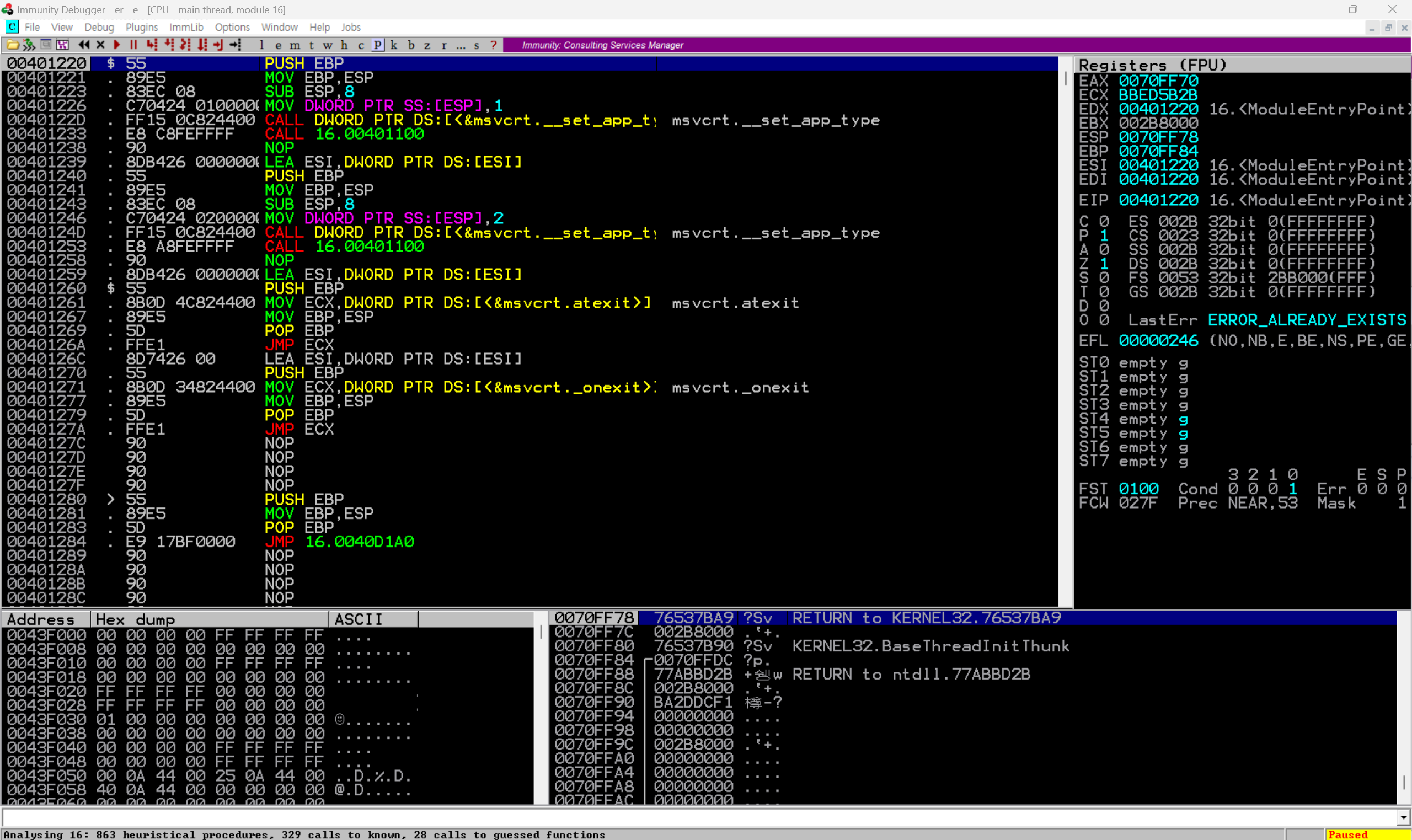 4. Immunity Debugger ์ ํตํด 16.exe ํ์ผ ์คํ