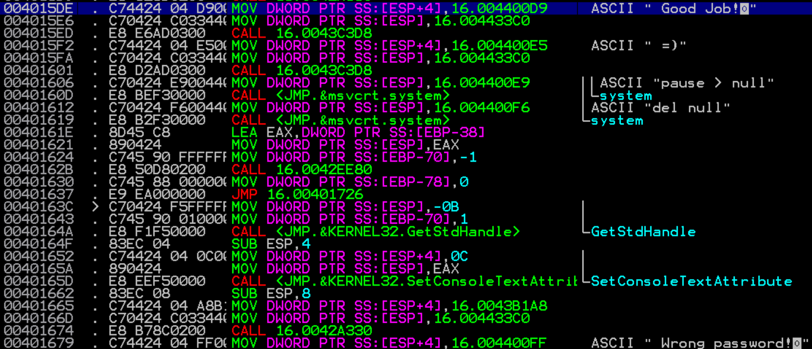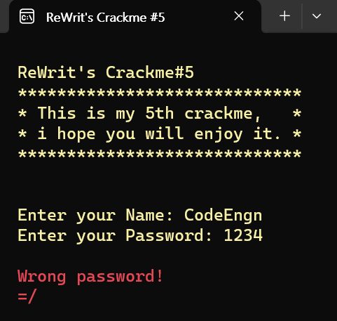 3. 16.exe ์ ์คํํ์ฌ ์์์ ๊ฐ ์ ๋ ฅ ํ "Enter" ํด๋ฆญ --> "Wrong password!" ์ด๋ผ๋ ๊ฒฝ๊ณ ๋ฌธ ํ์ธ