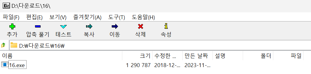 2. 7-Zip File Manager ์ ํตํด ํ์ผ ์์ถ ํด์ --> 16 ํ์ผ ์ ์์ฉ ํ๋ก๊ทธ๋จ ๋ฐ๊ฒฌ