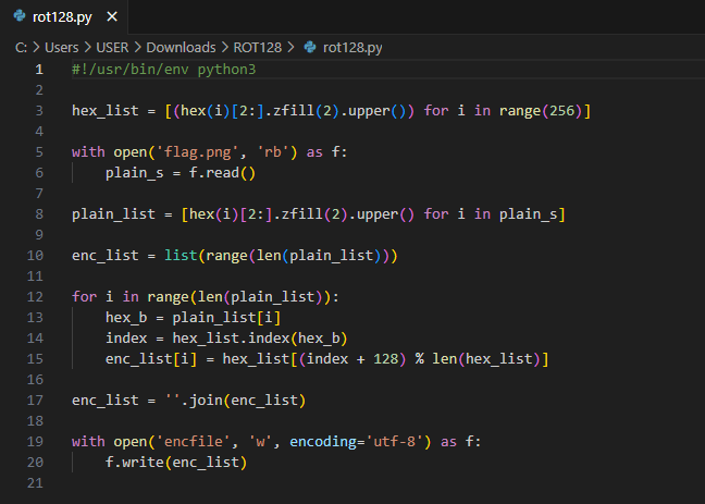 2. ๋ค์ด๋ฐ์ rot128.py ํ์ผ ์คํ ํ ์ฝ๋ ๋ถ์