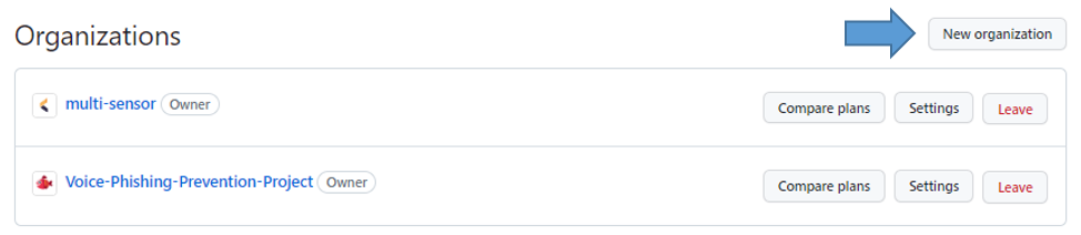 3. ์ฐ์ธก ์๋จ์ 'New organization' ํด๋ฆญ