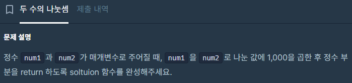 ํ๊ณ num2๋ก ๋๋ ํ 1000์ ๊ณฑํจ